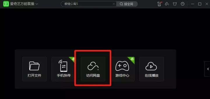 爱奇艺有个工具叫做 爱奇艺万能联播 ,下载安装后,主屏中就出现了访问网盘选项。