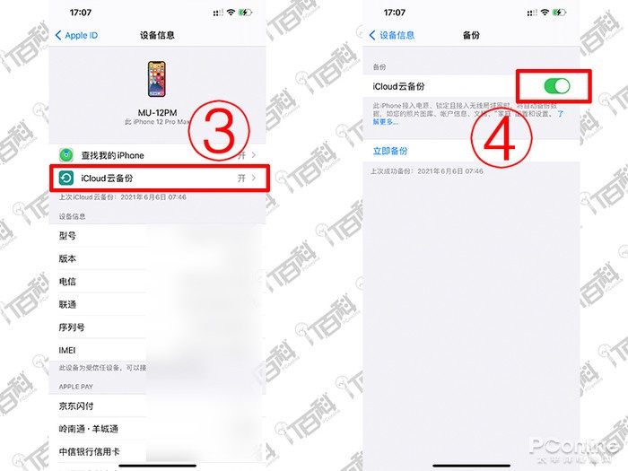 2、选择【iCloud云备份】,进入菜单后打开【iCloud云备份】后面的开关。