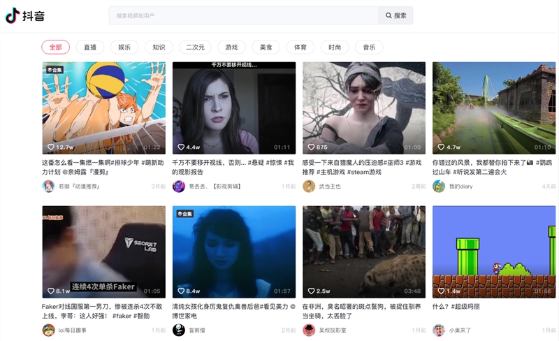 目前抖音的官网正式上线了,只要进入抖音的官网就可以在电脑上刷抖音了,现在抖音的电脑网页版功能还是比较简单的,截止目前抖音提供直播、娱乐、知识、二次元、游戏、美食、体育、时尚、音乐标签,剩下的功能应该也是在完善之中。