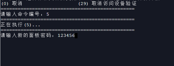 4.在上图命令面板中输入 "5" 就会对提你输入新的密码