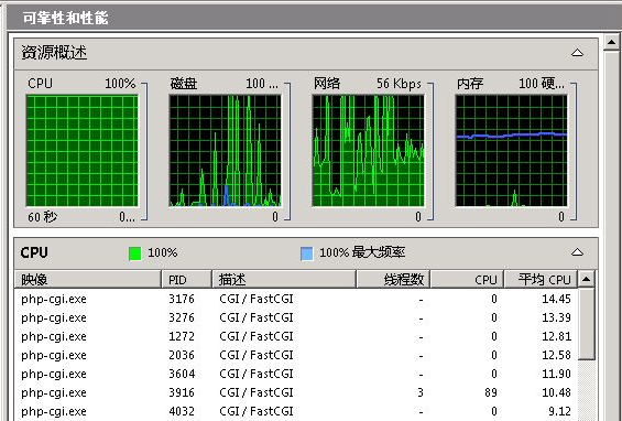 特征:服务器正常CPU消耗应该在75%以下,而且CPU消耗应该是上下起伏的。出现这种问题的服务器,CPU会突然一直处100%的水平,而且不会下降。查看任务管理器,可以发现是DLLHOST.EXE消耗了所有的CPU空闲时间,管理员在这种情况下,只好重新启动IIS服务,奇怪的是,重新启动IIS服务后一切正常,但可能过了一段时间后,问题又再次出现了。