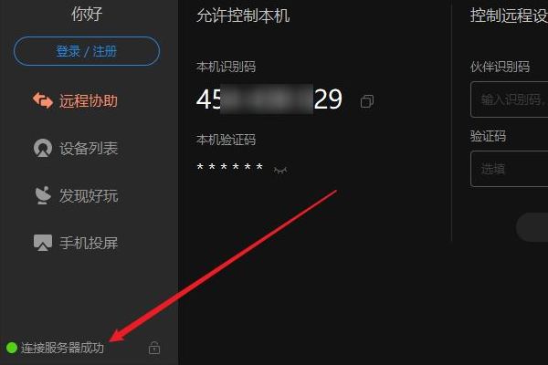1、首先打开向日葵远程控制软件,确保软件连接服务器成功。