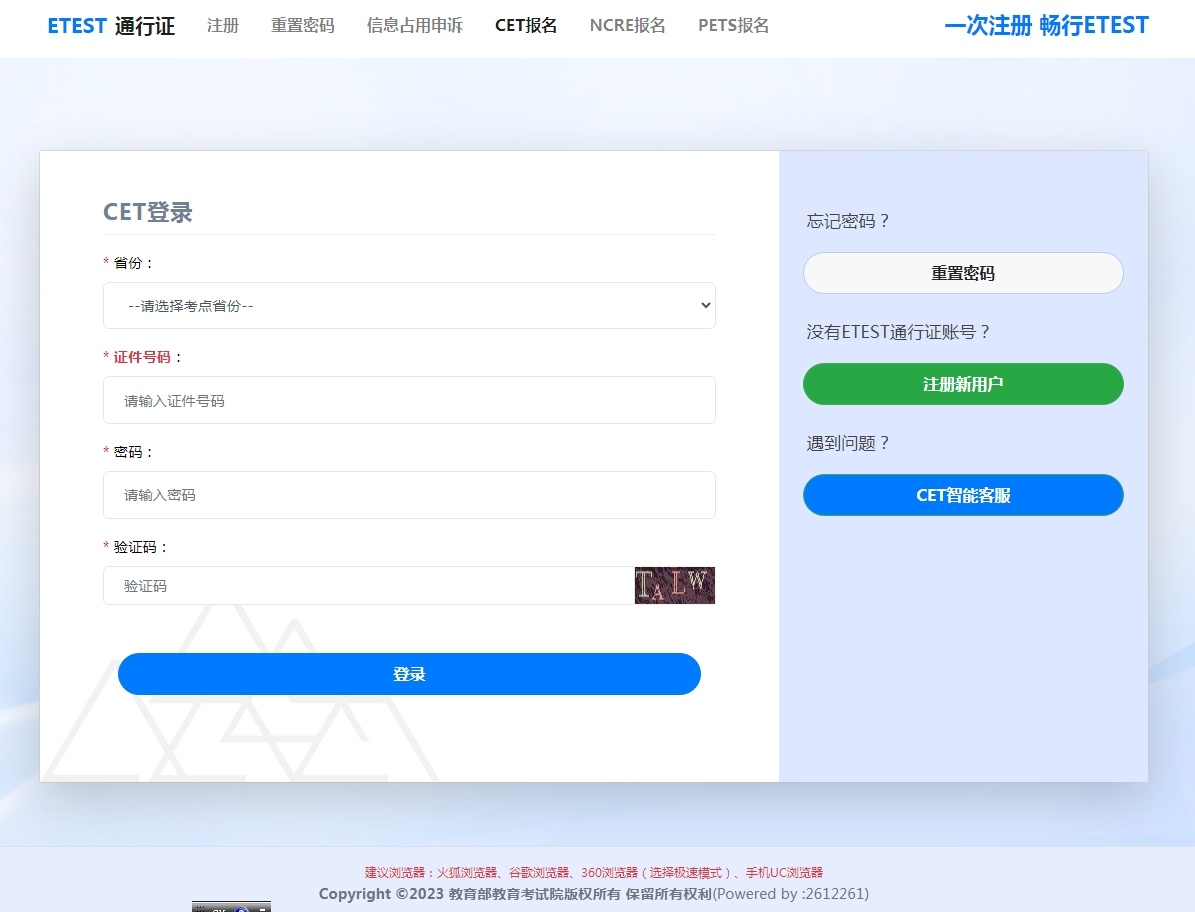 (1)选择CET笔试科目,方可进行CET口试科目的报考。
