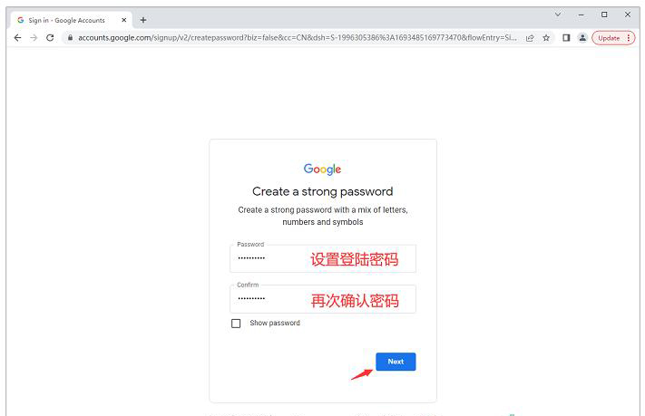 第五步:现在设置您的登录密码,设置好后点击“Next”按钮进入下一步。