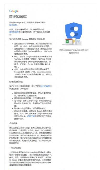 第五步:最后,我们同意谷歌相关的隐私权以及条款,谷歌账号就注册成功了。