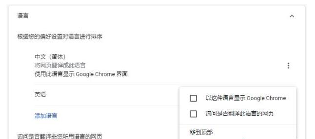更改语言步骤:浏览器右上角的三个点菜单按钮——设置——添加语言——添加对应IP地址的语言——选择“以这种语言显示Google chrome”——删除中文简体。