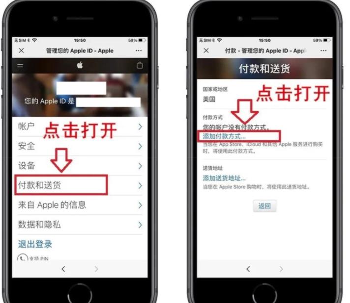 5、此时会跳转到Apple ID管理页面,进入后,点击【付款和送货】,在接下来的页面中点击【添加付款方式】;