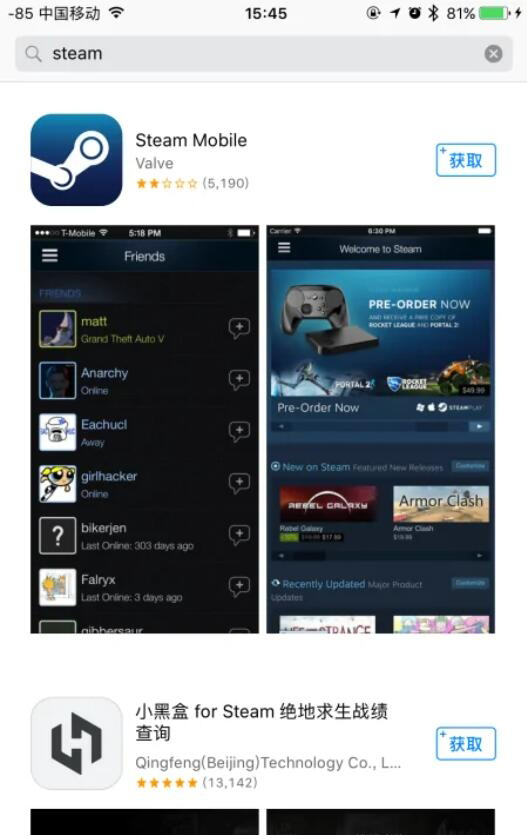 苹果用户可以直接在App Store里面进行搜索【Steam】,就可以下载,需要注意您的手机操作系统版本如果太低,可能会导致在使用Stem手机版时出现各种问题,如闪退、卡顿等。
