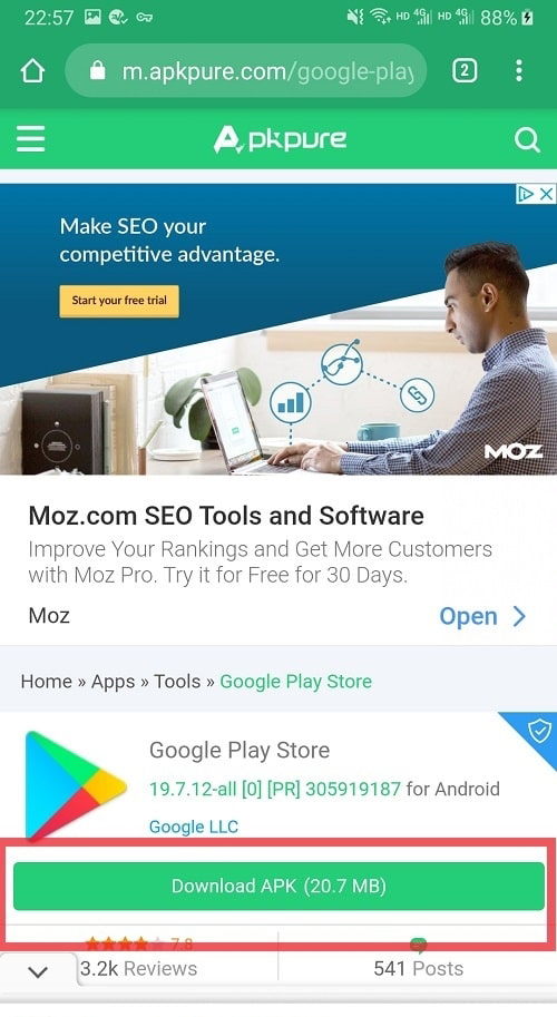 1、首先,连接好加速器,打开手机浏览器下载谷歌商店APK:https://google-play-store.en.softonic.com/android/download,下载APK到安卓手机,点击安装。
