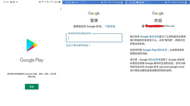 2、谷歌应用商店安装完成后,就可以登录您准备好的谷歌账号(有谷歌账号的朋友直接登录,没有谷歌账号的朋友可以自行注册或购买一个谷歌账号);