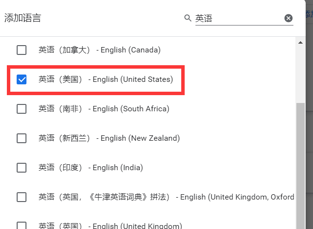 3、选择【英语(美国)】点击【添加】;