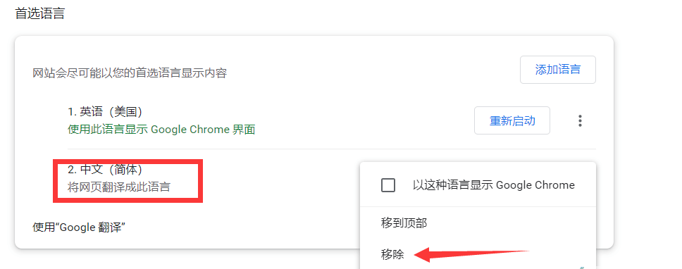 4、添加后点击后方的三个点,将英语(美国)选择【移到顶部】;