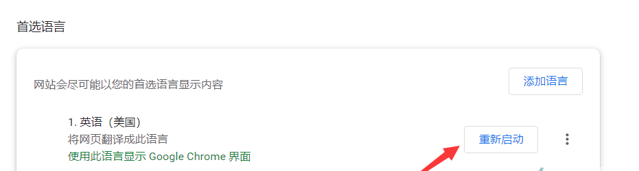 5、再点击英语(美国)后方的三个点按钮,勾选【以这种语言显示Google Chrome】;