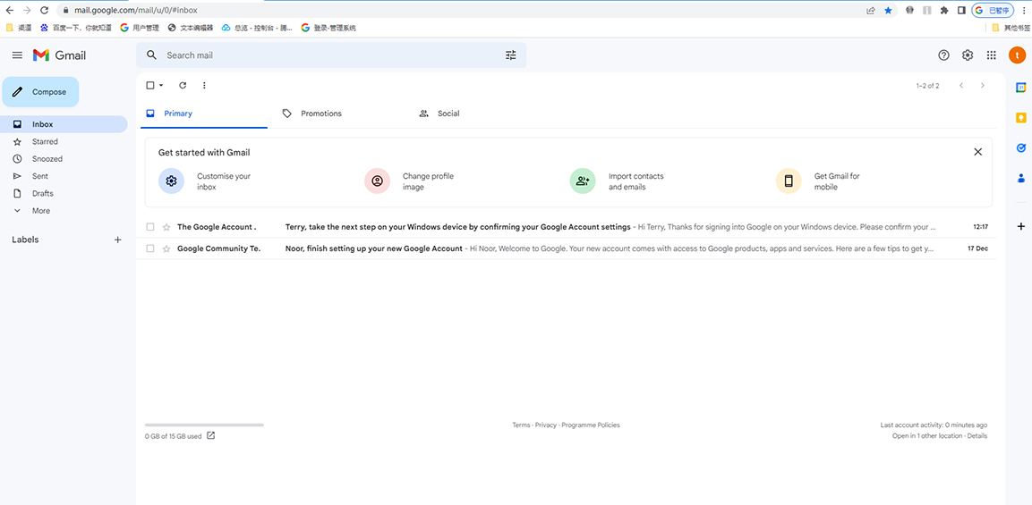 在谷歌浏览器登录谷歌账号,这时打开Gmail.com就会显示登录状态了。