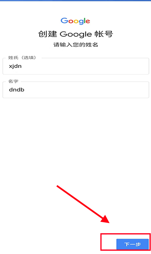 4.在”创建Gmail地址“处输入您想要注册的谷歌账号。