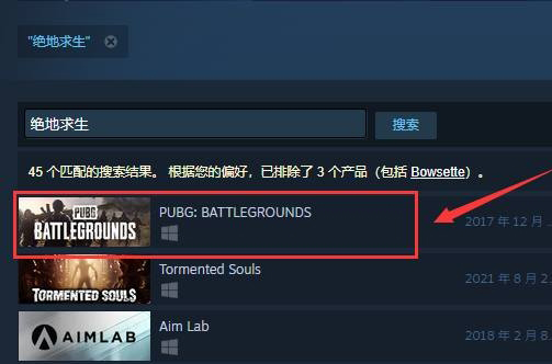 2.商店界面的右上角有个搜索框,输入您想要玩的游戏,小编以绝地求生为例;