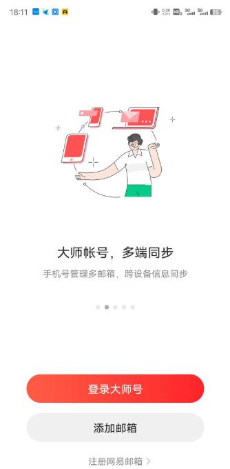 1、手机下载网易邮箱大师,进入APP,选择添加邮箱;