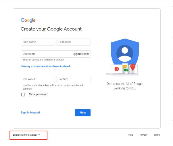 注册前请大家连接好加速器,才能成功打开Gmail注册页面;