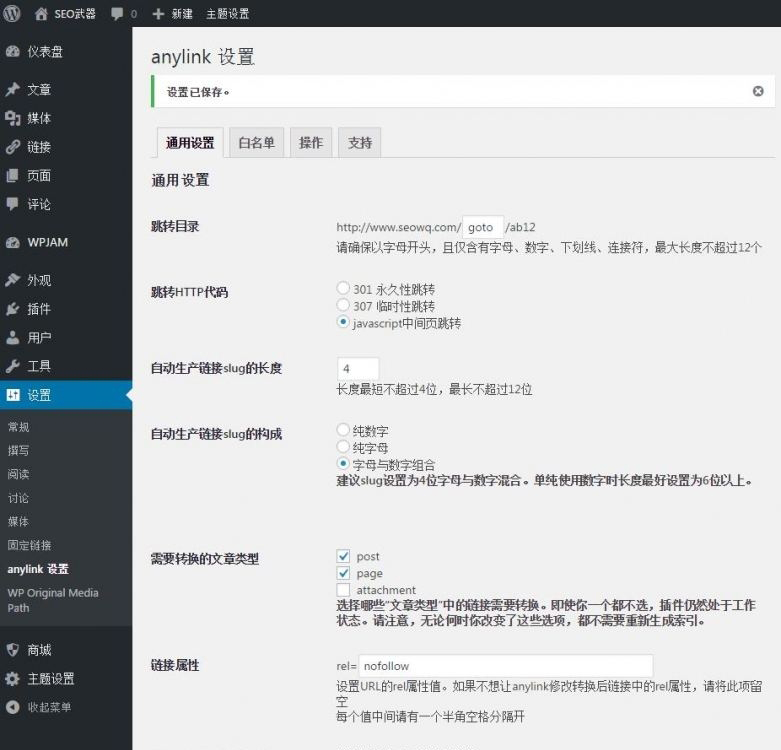 如果是非常重视这一块的朋友,可以尝试使用一款wordpress插件,这款插件能够自动将你的外链转换为内链,再通过301跳转、307跳转和js跳转三种方式(可选)跳转到外链上,让外链变为内链。