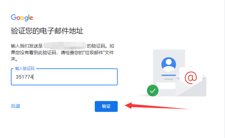 5,返回Google 账号注册页面,填入验证码,然后点击验证。