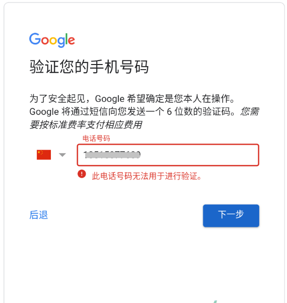 如何解决”此电话号码无法用于进行验证