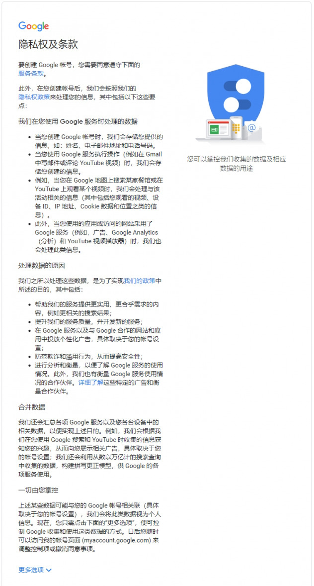 第七步:隐私权及条款,直接点击我同意就完成了谷歌账号注册。
