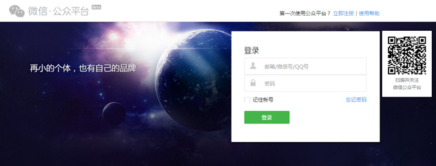 在微信公众平台官网首页(mp.weixin.qq.com)点击右上角的“立即注册”按钮。
