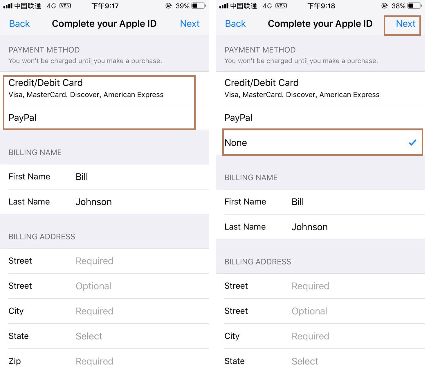 这个是关键的一步如果如下图有三个选项就选择None如果如图1只有两个选项我们啥都不要选 啥都不要选 啥都不要选 直接填写资料以后点击Next