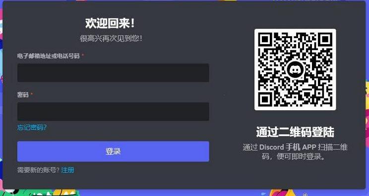 2、输入你的discord账号密码,点击”登录“按钮,我们也可以通过手机上的discord app扫面登录。
