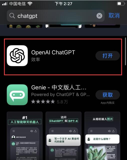这个时候,我们再去搜索“ChatGPT”,就可以成功搜出来,点击下载即可成功下载安装。
