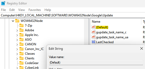 HKEY_LOCAL_MACHINESOFTWAREWow6432NodeGoogleUpdate
