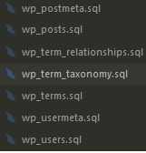 先将wordress网站的数据库中的以下数据表导出.sql文件,