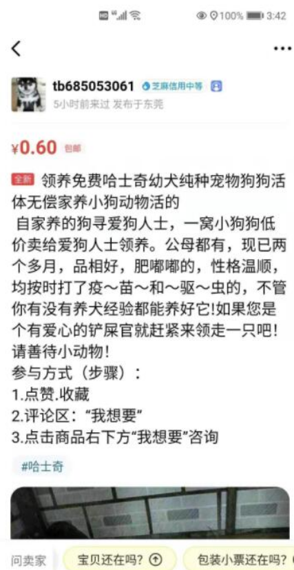 我们现在可以打开闲鱼去搜索“狗狗领养”,你会发现有很多好心人正在免费赠送各种狗狗,哈士奇,拉布拉多,阿拉斯加,看到这,你是不是觉得很奇怪,这些价值几百上千的狗狗真的免费送吗?当然不可能了,这都是套路。