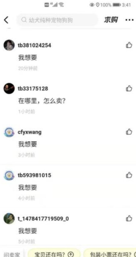 我们点进去看看,详情页写得非常真实,下面还有个参与方式:点赞,收藏,评论我想要,然后再咨询,看看下面每隔一两小时就有人评论,足以说明这个流量多大。 点赞收藏评论操作完之后,去咨询,卖家就该让你加微信了。这时候差不多鱼就上钩了。