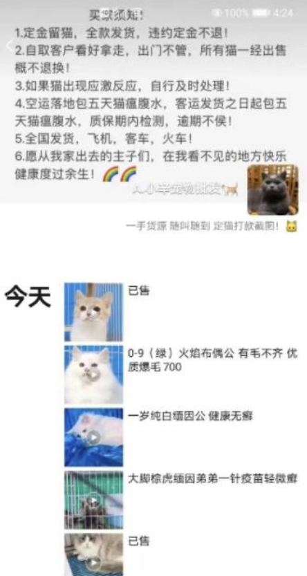 加上卖家微信后我们看他朋友圈全都是各种狗狗猫猫的视频,照片,还附带价格。这时候咱们问他是不是免费送,他铁定给你说,不好意思已经送完了,现在只有卖的了。看到这里都明白了没?这就是在引流精准粉,喜欢宠物的精准粉。