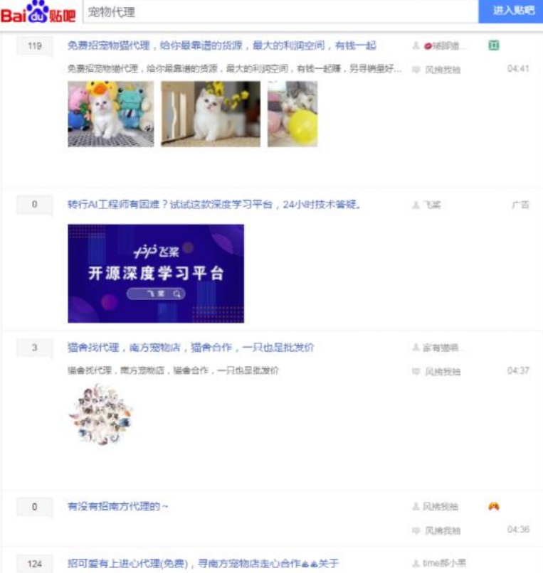 然后再准备一个微信号,到贴吧,宠物代理吧,狗狗代理吧,去找一个专门卖宠物的,做他代理,转发他的朋友圈内容,价格在他的基础上加价100-200元,具体怎么定价可以自己去了解一下宠物的行情,这个利润比操作普通的无货源舒服太多了。