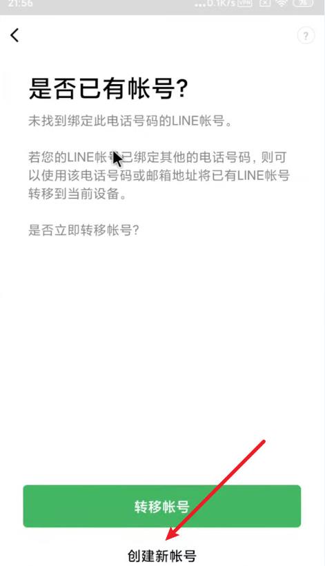 9、如果您之前有Line账号,点击【转移账号】,要是没有,点击【创建新账号】;