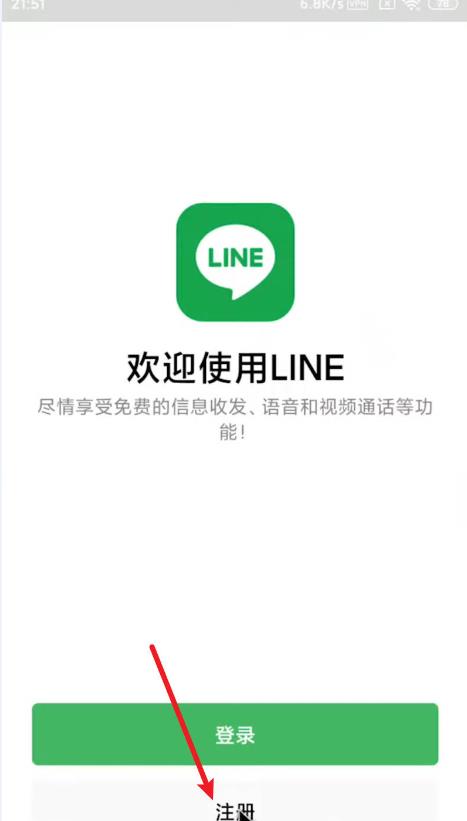 2、此时点击Line的注册按钮;