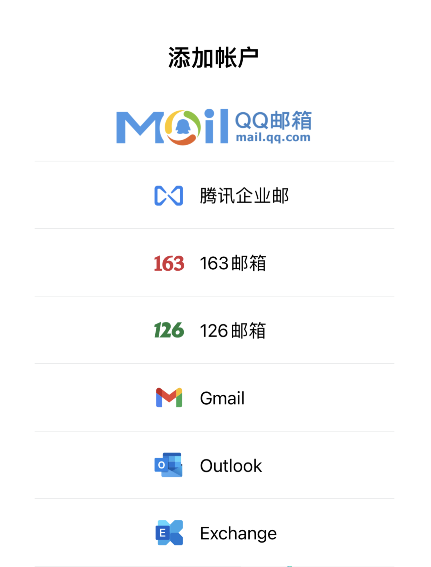 第二步:打开QQ邮箱添加账户,选择谷歌Gmail邮箱账户。