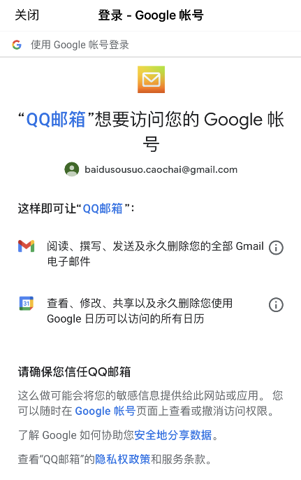 第八步:这样就注册成功了,再允许QQ邮箱获取谷歌Gmail邮箱权限,使用QQ邮箱收发谷歌Gmail邮件。