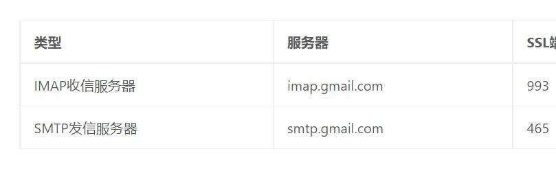 (1)谷歌邮箱收发信参数