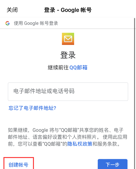 第四步:神器的一幕出现了,这里会出现谷歌账号登录提示,点击下方【创建账号】。