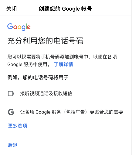 第七步:开启辅助电话号码,并同意谷歌协议与条款。