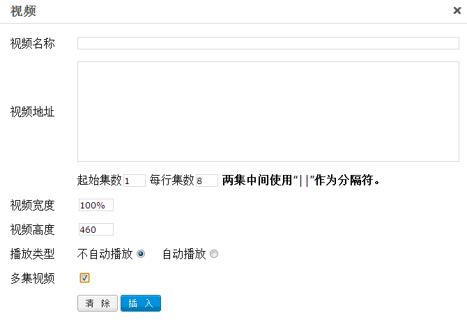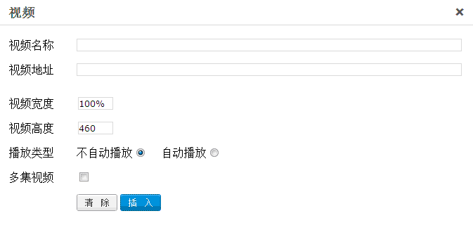 3、出现如下窗口,可设置视频名称(可选)、视频地址(必选)、等选项。