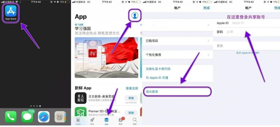 注意:共享美国苹果ID一定是在App Store里面进行登录,切记不要在设置iCloud中进行登录,造成锁机,后果您自负;