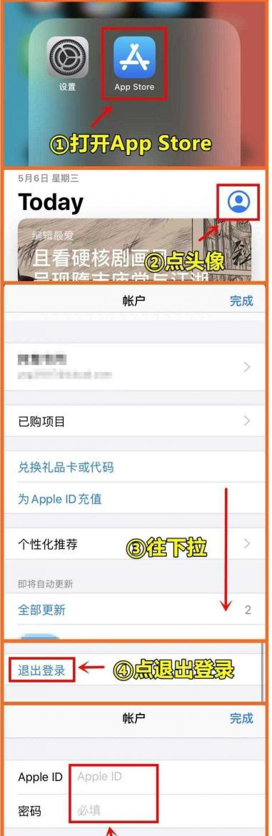 2、这个时候,我们就来到了 AppStore 的个人中心,我们把界面往下拉,拉到最底部,我们可以看到“退出登录”,点击退出,就退出了自己的苹果ID。然后,在输入框里面登录我们准备好的美国ID