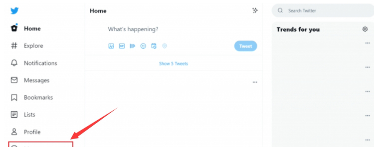 1、同样的我们也是在推特官网登录好我们的推特账号,然后点击更多“More”。