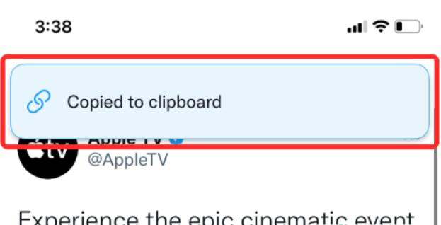 Twitter 应用程序现在将显示该推文的链接已复制到您的剪贴板