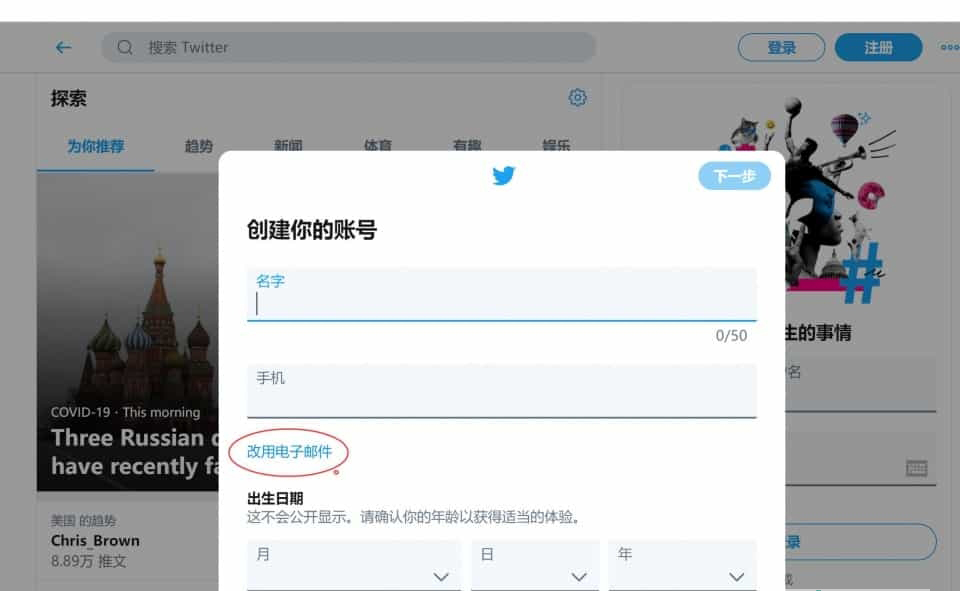 第二部我们就是要注册推特账号了,如果没有推特账号,你也进入不了推特,必须要登录才可以浏览内容。