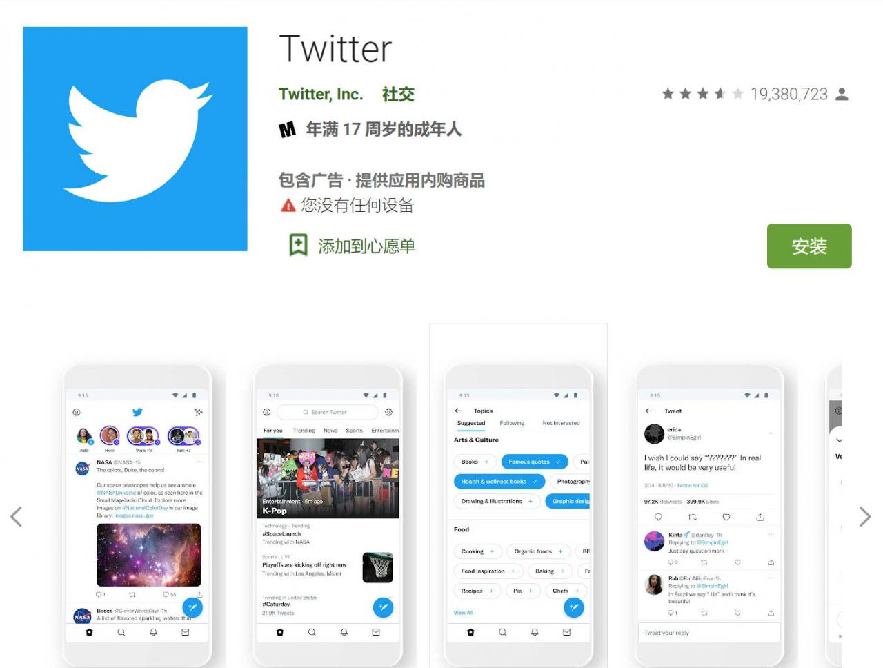 安卓手机:官方版本可以去谷歌商店下载,不会使用谷歌商店的,可以在谷歌搜索里面搜索“推特APP下载”,就可以找到很多三方网站分享安装包的,我们下载一个即可。